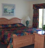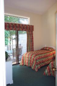 of room for getting ready, along with a whirlpool tub. The guest bedroom is furnished with two twin-size beds, dresser, and nightstand. A second bathroom adjoins the guest bedroom.